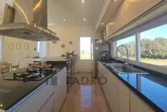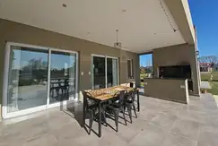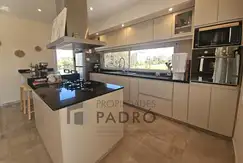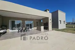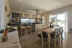 Moderno inmueble desarrollado en una sola planta. Se encuentra ubicado sobre uno de los lotes mas grandes de San Roque y además posee una ubicación central dentro del mismo, con vista abierta a espacio verde.Ingreso a living comedor integrado. Cocina con mesada de mármol, muebles bajo mesada y alacena de melamina. Barra con anafe de 4 hornallas y extractor de aire de acero inoxidable. Horno empotrado.
