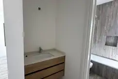 Galería amplia con parrilla (frente tipo guillotina), mesada y bacha con agua fría y caliente