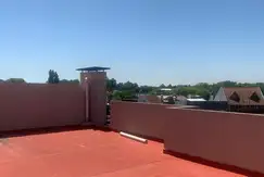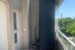 Balcón terraza y acceso por escalera desde el balcón a gran terraza con parrilla de las dimensiones del departamento.