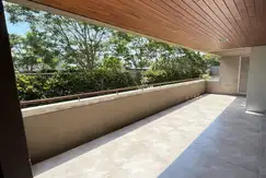 Departamento en PB de 2 dormitorios (el principal en suite con vestidor) y 2 baños completos. Cuenta con un gran balcón terraza corrido con vistas al jardín del contrafrente.