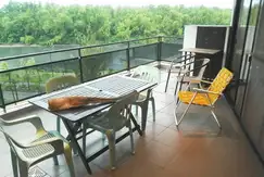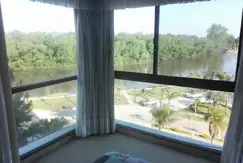 El departamento cuenta con 3 dormitorios, 2 baños compartimentados, uno con hidromasaje, gran living comedor de 50 M2, amplio balcón con parrilla mesas y sillas y sillones reclinables. 2 TV de 47 y 42", aire acondicionado central (frio/calor). Todos los ambientes tienen grandes placares y hermosas vistas a paisajes, 2 cocheras (una cubierta y otra no) y amarra propia.