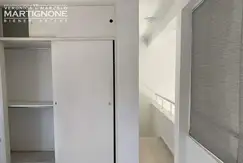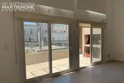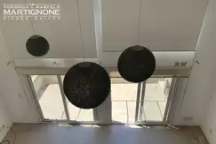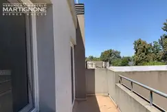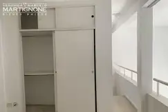 DEPARTAMENTO de 86m2 aprox, en 1er piso por escalera, con living comedor de doble altura, muy luminoso por tener doble puerta ventana a balcón terraza, muy buena vista!, parrilla y conexión para lavarropas; cocina con mucho mueble bajo mesada, artefacto de cocina y campana extractor, abertura tipo pasa platos o posible barra al comedor; toilette; baúl bajo escalera. Planta alta: dormitorio con placard, balcón a living comedor y amplio balcón con vista al frente; baño completo con bañera.