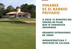 Pinares es un Club de Campo con alto nivel de excelencia. Formado sobre un campo de 252 hectáreas, atravesado por un arroyo que lo hace un lugar privilegiado, con lotes bien amplios, espacios verdes y bosque, ideal para disfrutar de la naturaleza y con una gran variedad de servicios y actividades deportivas.