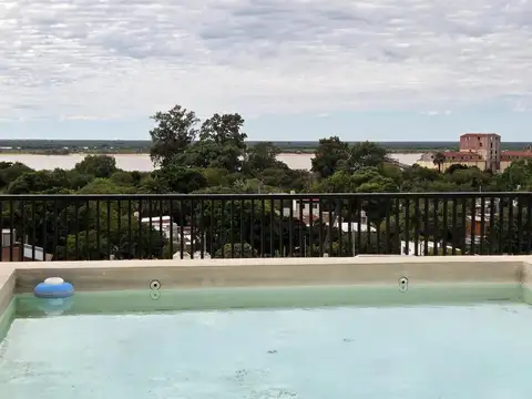 Posee dos terrazas independientes, con control de acceso, una de ellas se ubica al frente y posee pileta con vistas al río, ducha y solarium; mientras que la otra terraza, es interna con quincho con parrillero, mesas, sillas y un cómodo toilette.