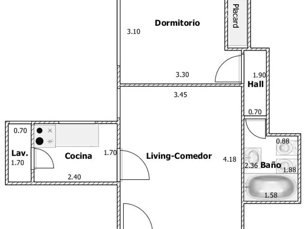 Lavadero: 0,70 x 1,70