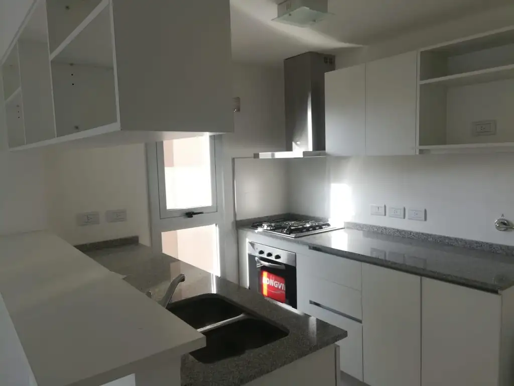 La unidad consta de: cocina con alacena, bajo mesada, campana de acero inoxidable, anafe a gas, horno eléctrico Longvie, barra tipo desayunador que separa cocina de living comedor.