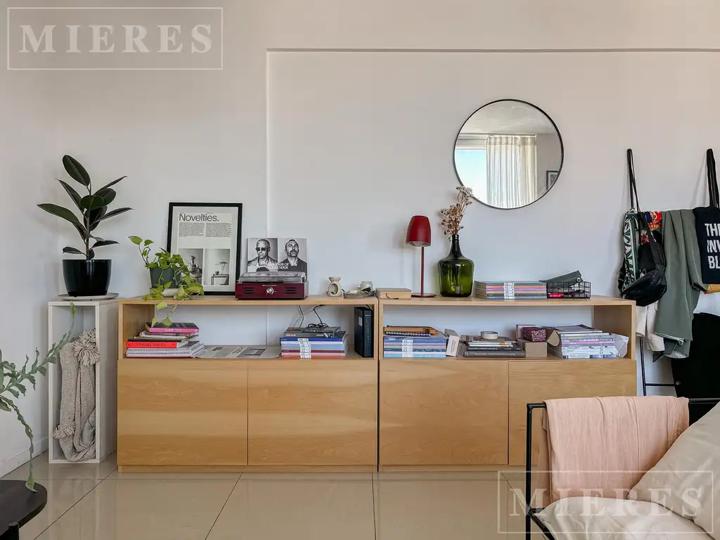 Departamento de 2 ambientes amplio, súper luminoso y con excelente distribución, living-comedor con puerta ventana de piso a techo, salida a un balcón con vista al abierta, cocina semi integrada con barra y espacio para lavarropas y muebles bajo mesada y alacenas, barra desayunadora, gran placard para ropa blanca o para complementar el del dormitorio, dormitorio amplio con placards de piso a techo. Baño completo con ventilación y luz natural.
