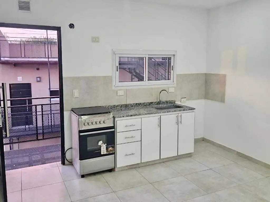 La unidad cuenta con living, comedor y cocina integrados, generando un espacio funcional y moderno. Cocina y termotanque electricos, además de conexión para lavarropas.