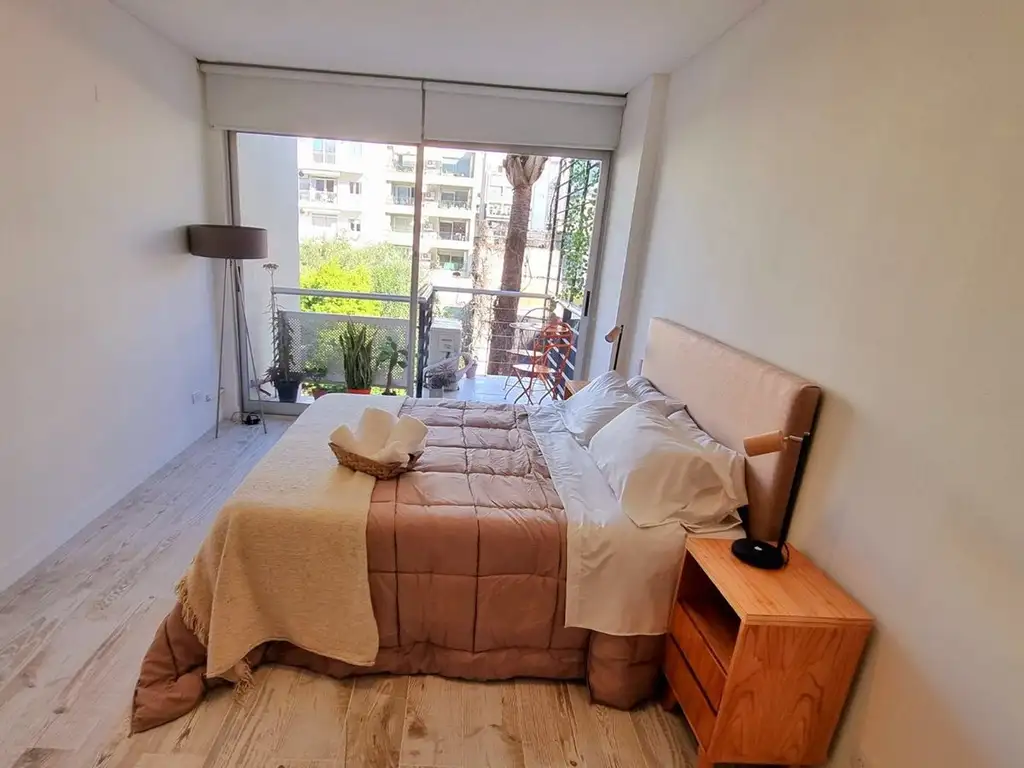 Alquiler en Belgrano, impecable estado, tercer piso al contrafrente, con balcón, vestidor, super luminoso, muy amplio, a una cuadra de Av. del libertador. Esta equipado con: wifi, sommier, aire acondicionado frio/calor, mesa con tres sillas, dos sillones individuales, heladera con freezer, cafetera nespresso, tostadora, pava eléctrica, cubiertos, platos, vasos, utensillos de cocina, plancha, tabla de planchar, secador de cabello, caja de seguridad, (la tv y el horno microondas que figuran en las fotos, no estan incluidos) Zona de exclusivos restorantes y cafeterías. El edificio cuenta con piscina, gimnasio y dos amplios ascensores.