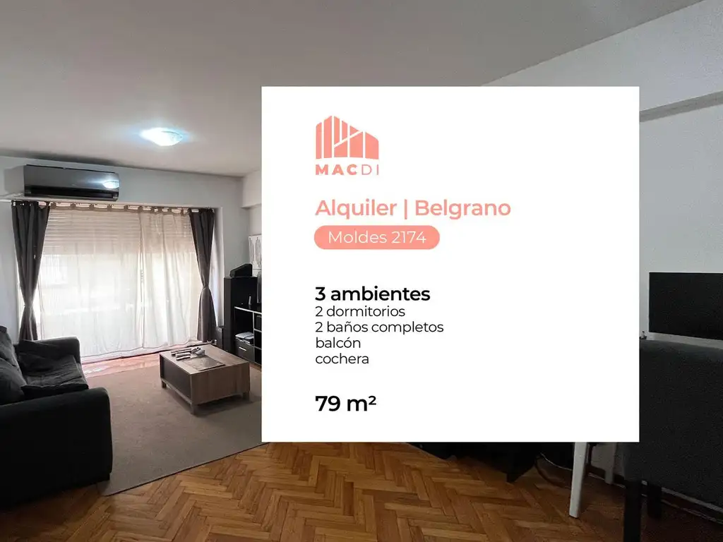 Departamento en Alquiler con cochera fija cubierta en Belgrano.