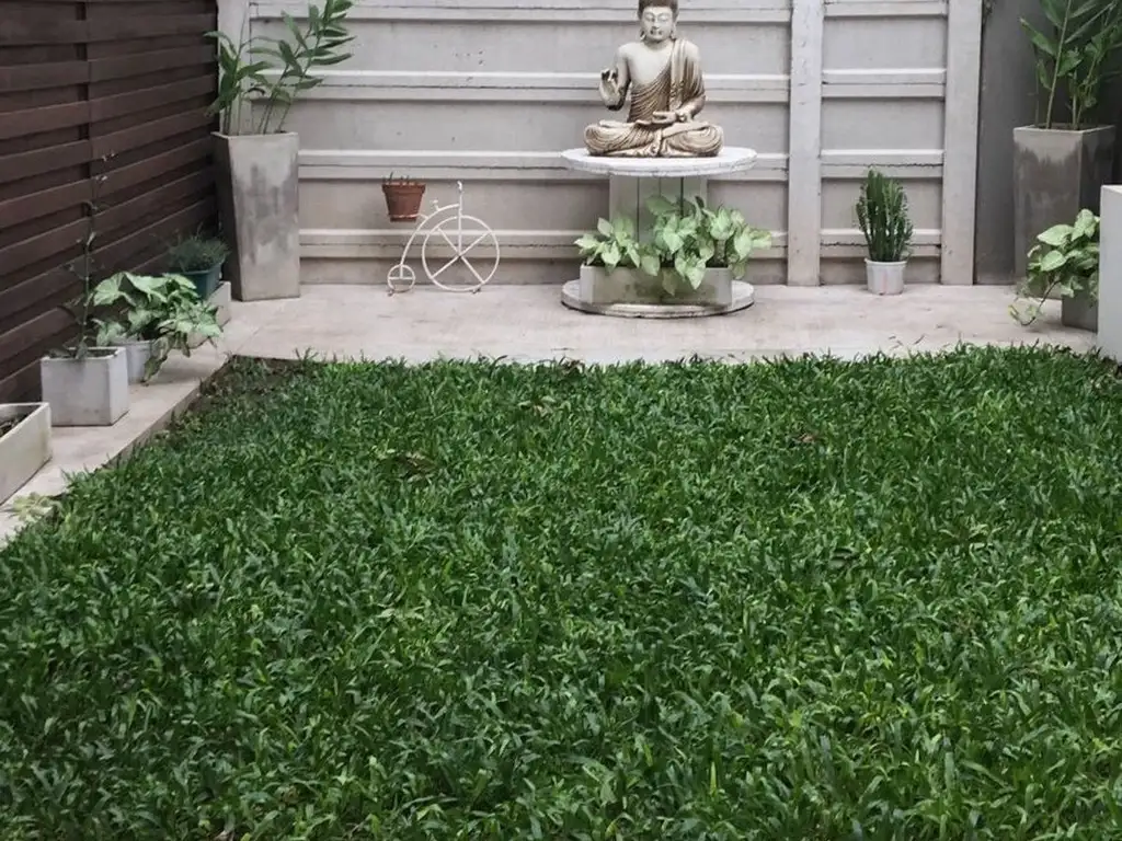 Tiene un pequeño jardín parquizado, con galería cerrada, parrilla y cochera propia.