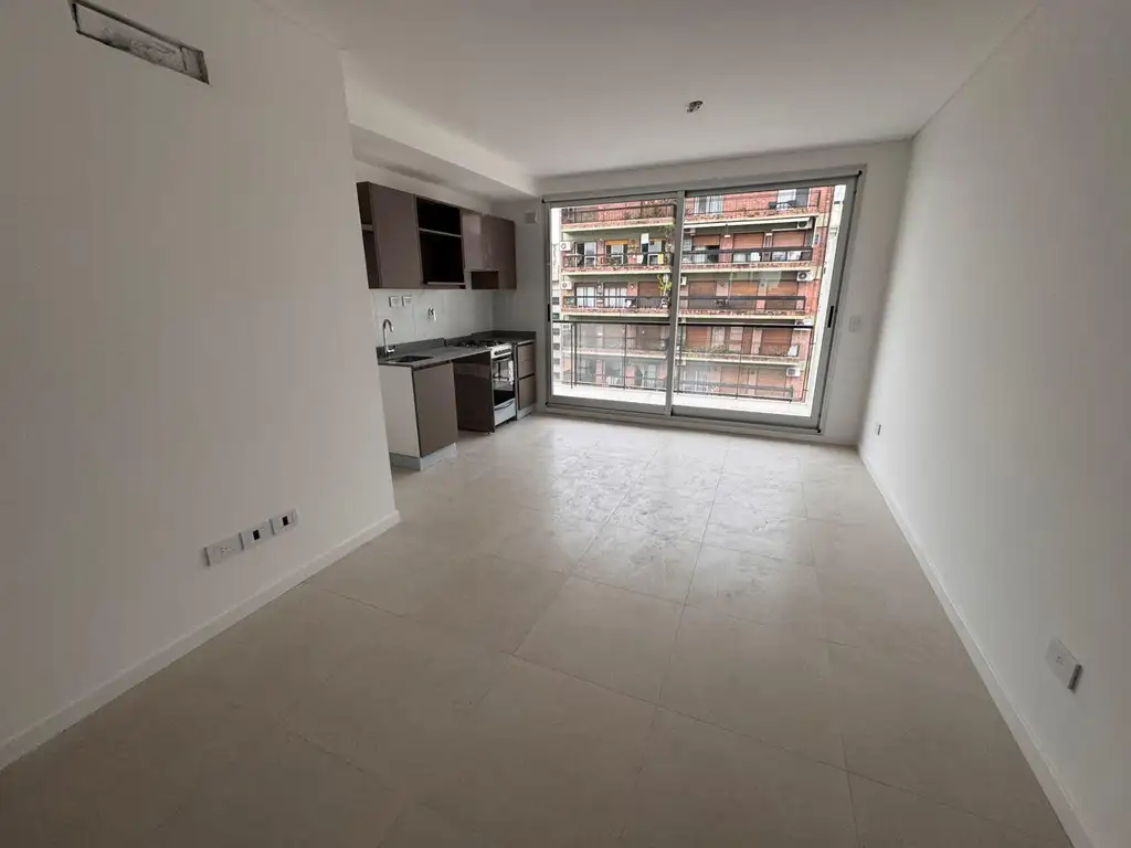 Living comedor con salida balcón corrido al contrafrente, con cocina a gas incorporada con espacio para heladera grande y conexión para lavarropas.