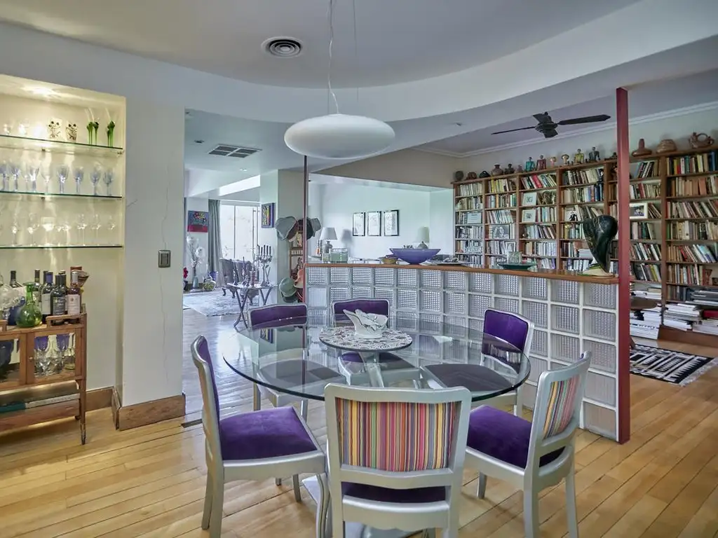 Hall de recepción que conecta con 1 espacioso Living y comedor en L con salida a balcón y vista al Parque Botánico. Espectacular biblioteca a lo largo del mismo. Detalles de calidad.