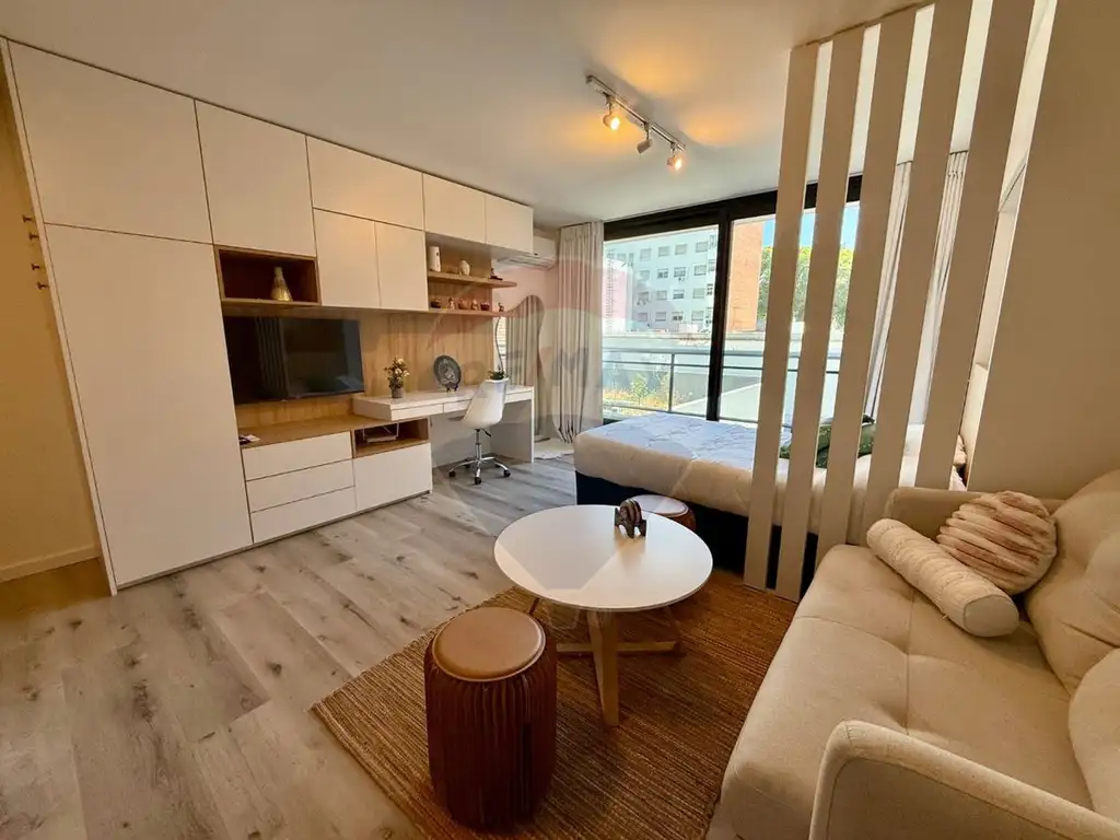 La unidad se presenta totalmente amoblada y equipada, tal como se aprecia en las fotos, pronta para entrar. Cuenta con balcón, aportando luz natural y un espacio exterior disfrutable.