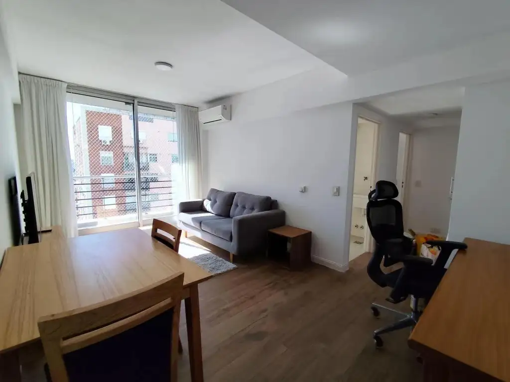 El departamento cuenta con un luminoso living comedor, cuidadosamente amoblado con sillón, mesa de comedor y un Smart TV de 55 pulgadas con sistema Ambilight, creando un espacio cómodo y contemporáneo tanto para el descanso como para recibir visitas. El ambiente dispone de aire acondicionado split, al igual que el dormitorio, asegurando confort durante todo el año.