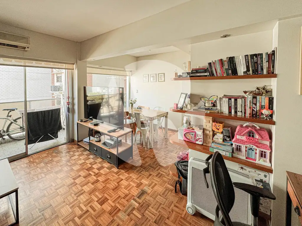 Living amplio con posibilidad de separar los espacios de living, comedor y hasta escritorio. Todo este ambiente con salida al balcón corrido de cómodas dimensiones y