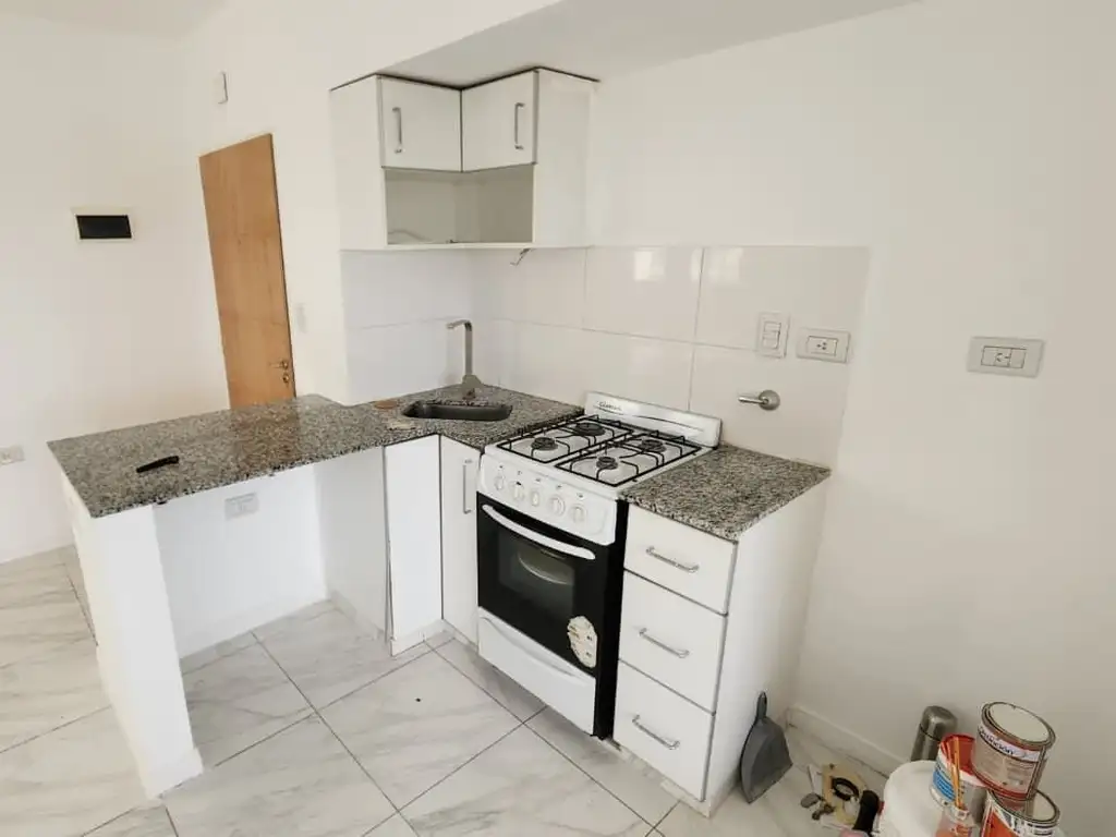 La unidad cuenta con un living-comedor amplio y muy luminoso, con salida a balcón. Cocina integrada, funcional, con muebles bajo mesada y alacena. Espacio para lavarropas y heladera.