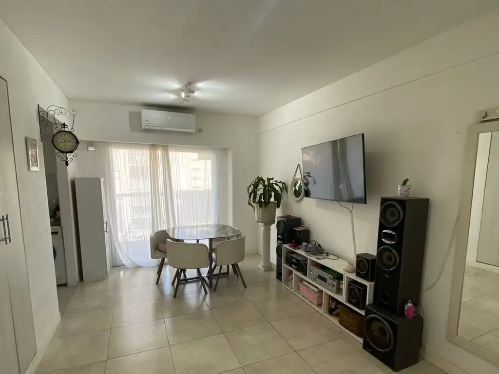 LIVING COMEDOR AMPLIO CON SALIDA AL BALCON AL FRENTE, COCINA SEMI INTEGRADA CON MUEBLES Y ARTEFACTOS, BAÑO COMPLETO CON BAÑERA, DORMITORIO CON PLACARD Y VENTANA AL CONTRARENTE.