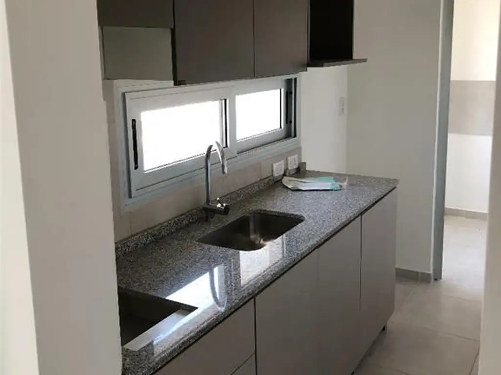 Unidad al frente con balcón. Cuenta con amueblamiento bajo mesada, alacena, interior de placard y preinstalaciones para termotanque eléctrico y lavarropas.
