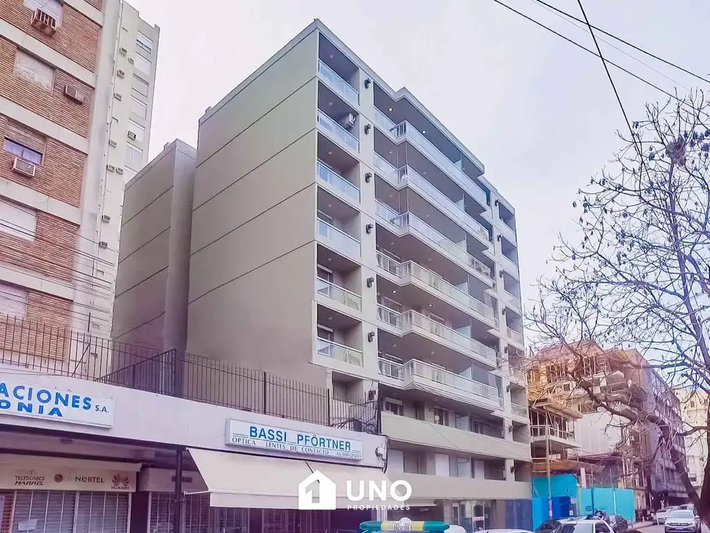 Departamento compuesto por estar/comedor, cocina integrada, balcón corrido al contrafrente y baño completo. Las aberturas son con doble vidrio hermético DVH. Amenities en el 1 Piso: piscina, quincho con parrillero, baño y solarium. Excelente ubicación, en zona de río, próximo al parque España. Orientado al este.