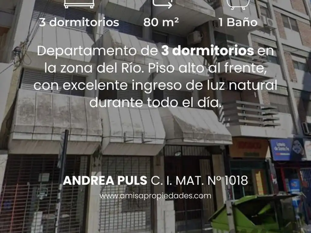 Departamento de 3 dormitorios ubicado en zona Río, en piso alto al frente, con excelente ingreso de luz natural gracias a su orientación Norte.