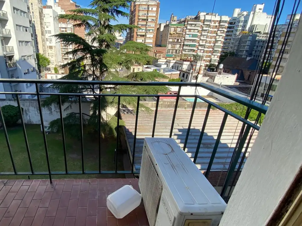 Este edificio fue finalizado en el año 2000, y en su ingreso tenemos puerta de seguridad Pentágono; como primer ambiente nos encontramos con un amplio y luminoso living-comedor con salida al balcón y una vista espectacular a un centro de manzana lleno de vegetación. El living cuenta con aire acondicionado instalado y en funcionamiento, además de puerta balcon con persiana eléctrica y mosquitero.