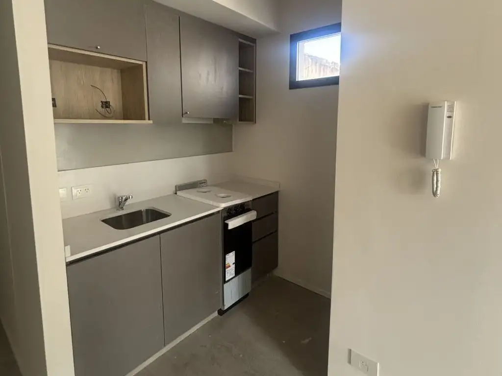 Cuenta con amplio espacio con salida al balcón, espacio para dormitorio, cocina integrada con anafe de dos hornallas y horno eléctrico, amplio placard con interior, baño completo con ducha.