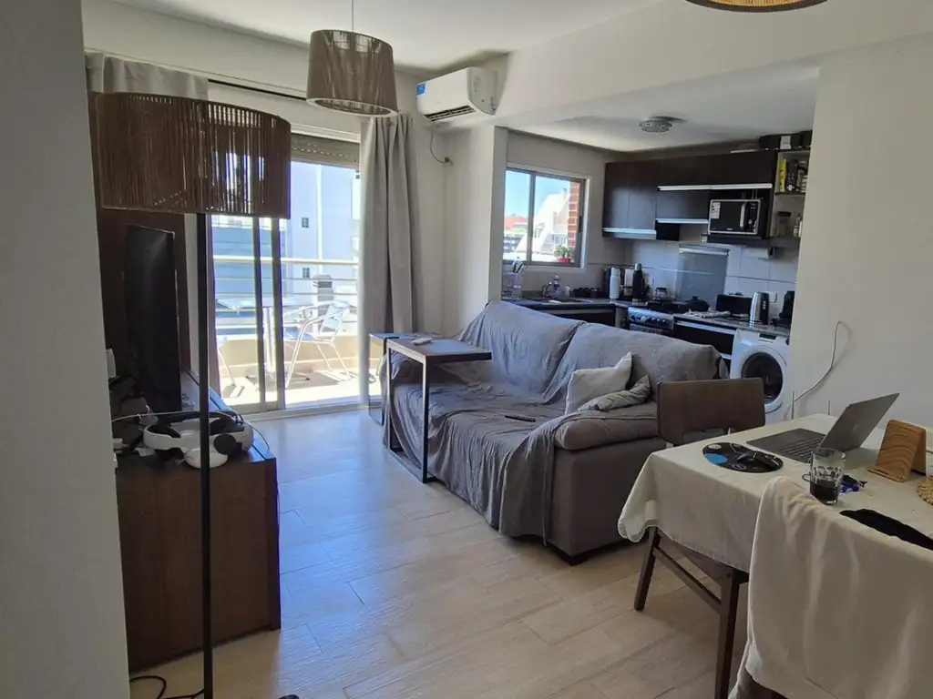 Es un duplex ! En piso 7mo living con cocina integrada, baño completo y 2do dormitorio, balcón terraza a todo el frente