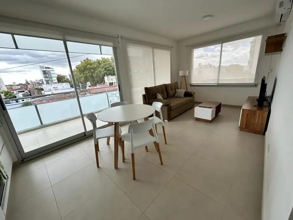 Moderno, amplio y luminoso dos ambientes: living apaisado con gran balcón terraza de 10 mts. excelente vista, luz y sol.