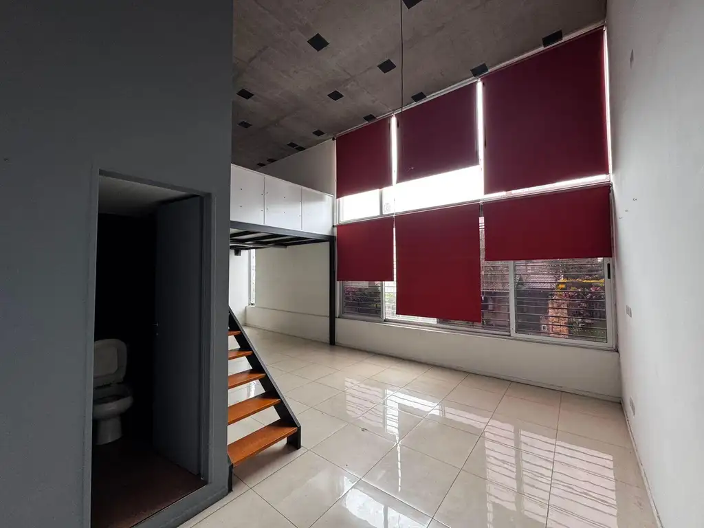 Departamento de 2 ambientes tipo loft, en alquiler, cuenta con un amplio living muy luminoso, cocina, toilet, baño completo y cochera