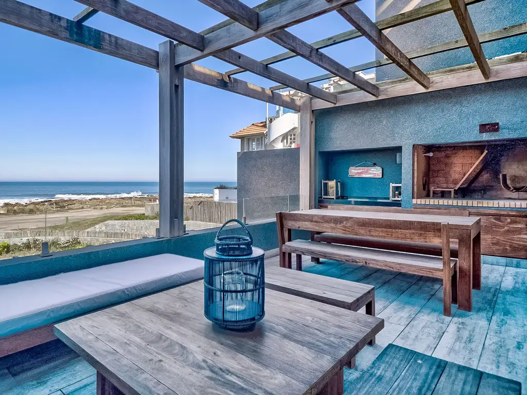 Para tener perfectas vacaciones, tenemos este departamento frente al mar, con amplio living comedor con cocina inttegrada, que sale a terraza con parrillero frente al mar, 3 suites, la principal frente al mar, posee dependencia de servicio completa o huéspedes, en planta baja con amplio patio.