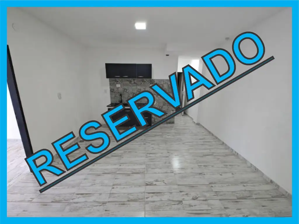 Cocina comedor 3.03 x 3.50 mts con piso y una pared revestida en cerámica, mesada con mueble bajo mesada y alacena de melamina, instalación eléctrica para aire acondicionado split, agua fría y caliente.