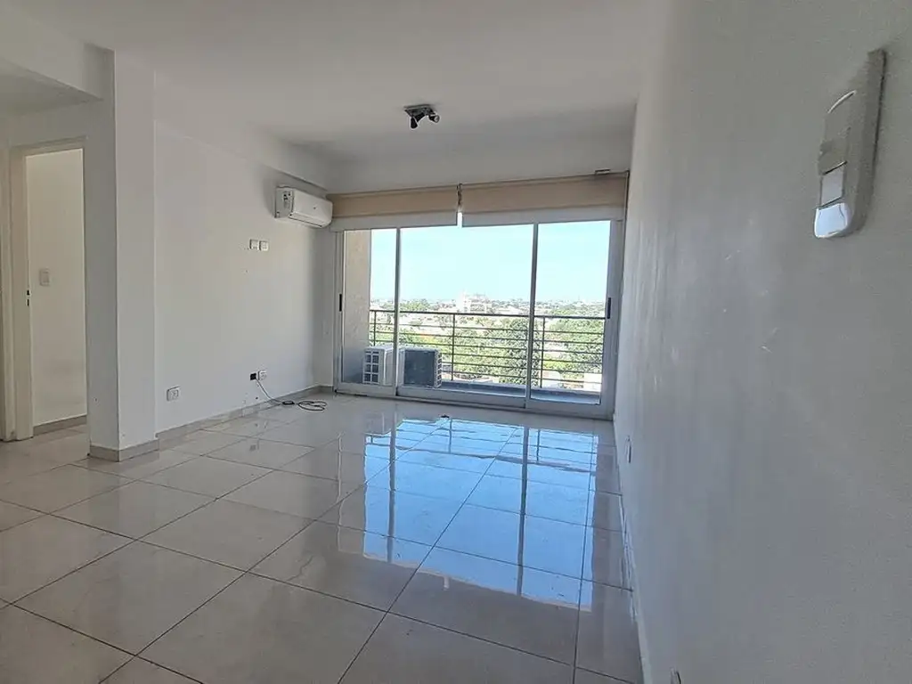 El departamento se encuentra en un piso alto (contrafrente), brindando una vista abierta panorámica y una excelente circulación de aire. Cuenta con un amplio living-comedor y acceso a un balcón aterrazado con red de protección instalada. La cocina está integrada con un diseño funcional, equipada con muebles bajo mesada, alacenas y cocina , la unidad dispone de dos equipos de aire acondicionado tipo Split ya instalados.