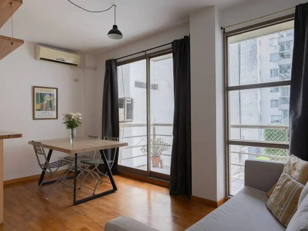 El dormitorio principal tiene también salida al balcón corrido. Dispone de muy buen placard. El edificio cuenta con laundry. Calefacción por losa radiante central. Aire acondicionado. Agua caliente central. Cámaras de seguridad. Una opción ideal para quienes buscan comodidad, funcionalidad y una excelente ubicación.