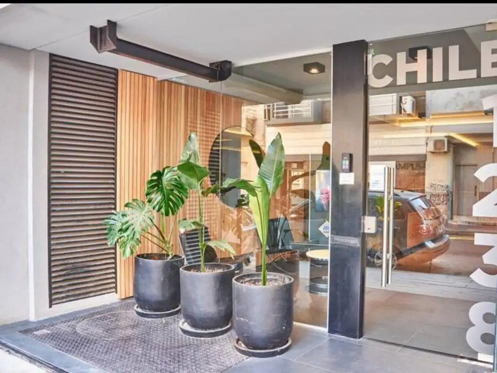 El edificio ofrece recepción, laundry y un amplio patio con sillas, brindando confort y espacios comunes modernos.