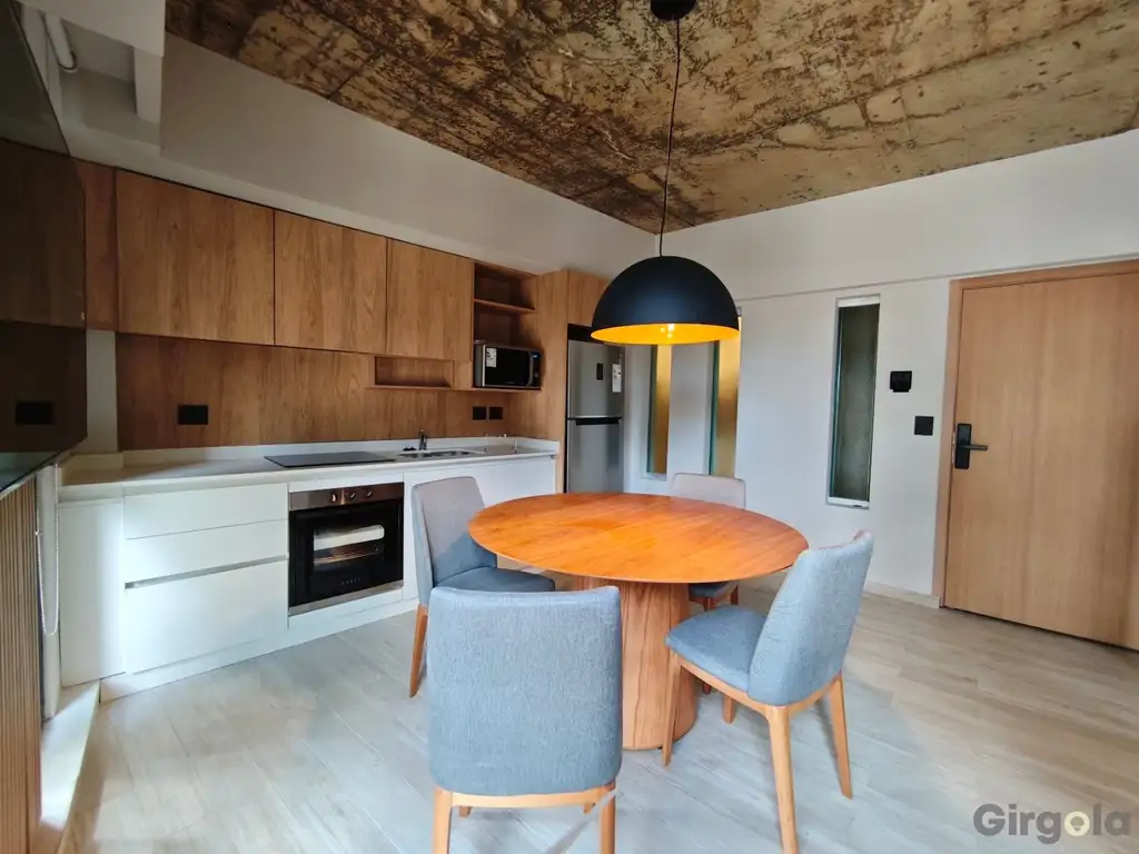 La unidad cuenta con un dormitorio luminoso, un baño completo y una cocina de diseño moderno integrada a espacios pensados para aprovechar al máximo la luz natural y la ventilación. Además, se ofrece la opción de cochera cubierta.