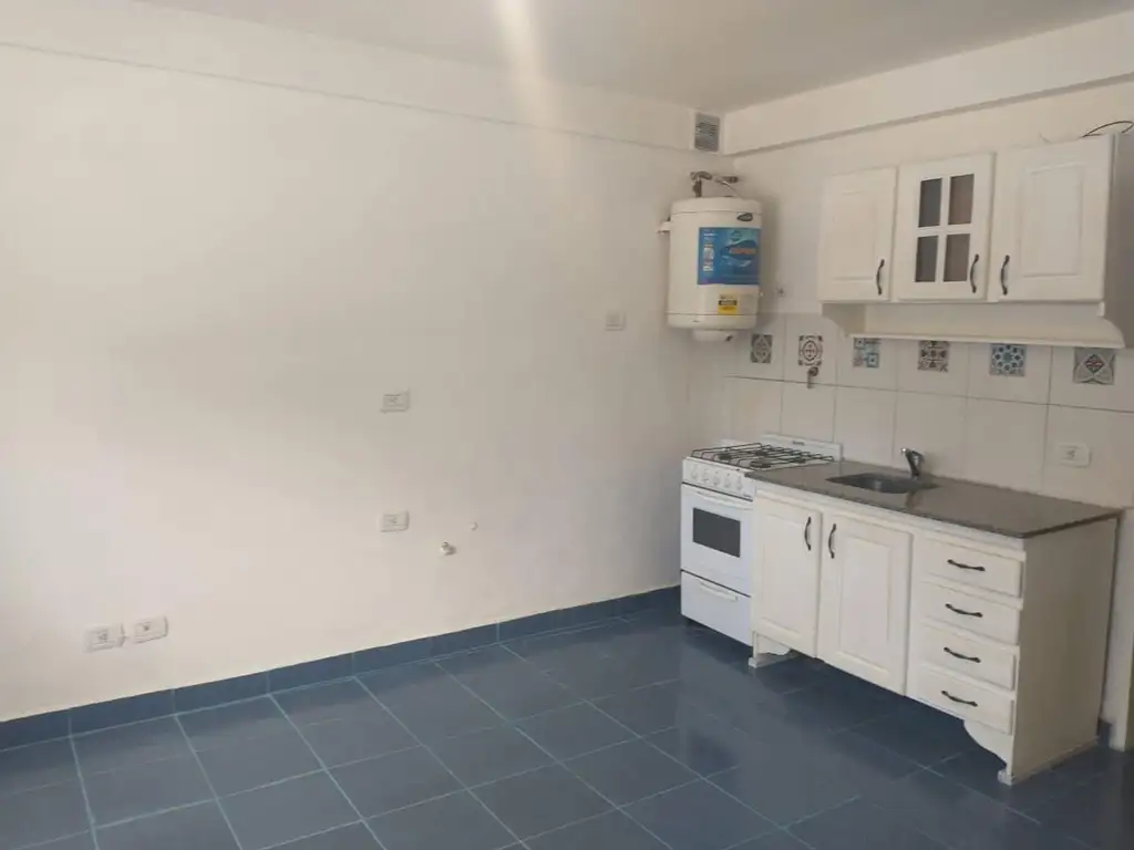 Cocina Integrada: Cocina compacta equipada con muebles bajo mesada y espacio para heladera,