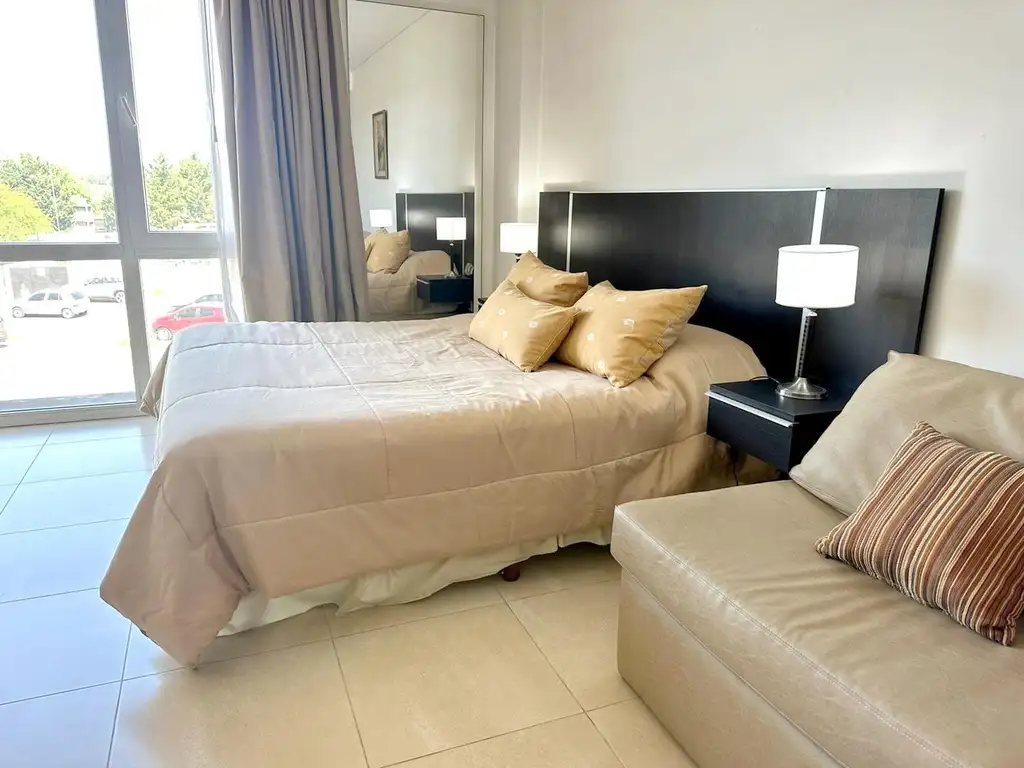 monoambiente en condominios de bahía grande, totalmente amoblado y equipado. cuenta con aire acondicionado frío/calor y cochera cubierta. el alquiler no incluye expensas ni gastos.