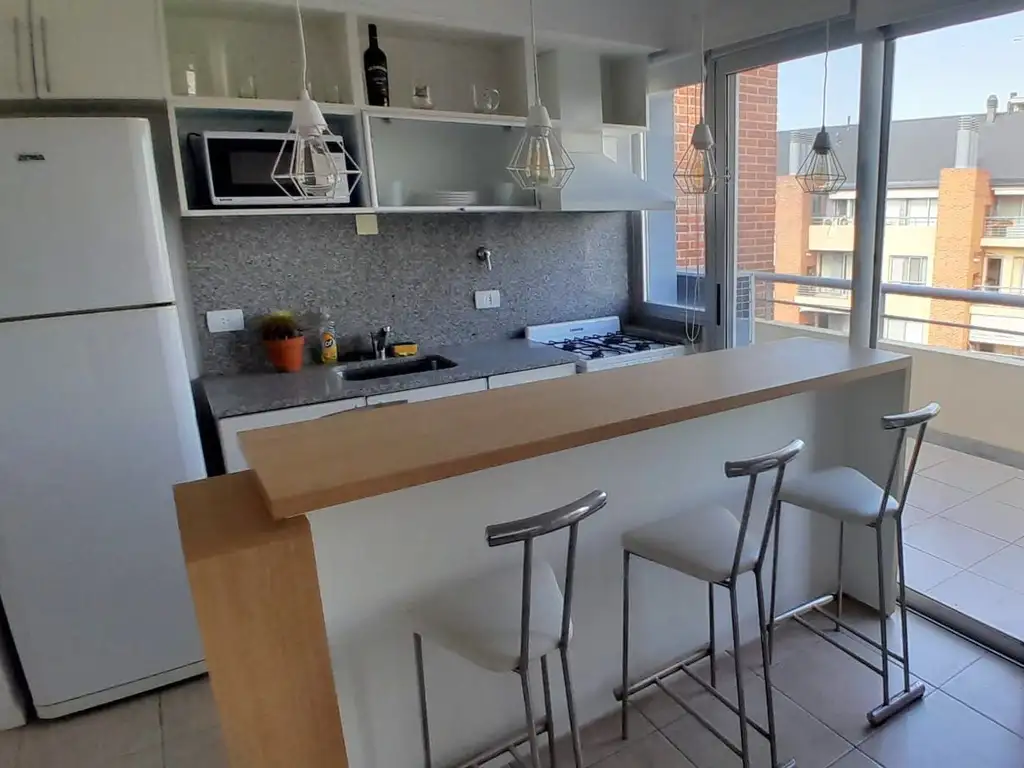 En planta baja gran ambiente con cocina integrada, baño completo, espacio de guardado, balcón con parrilla y espacio para lavadero.