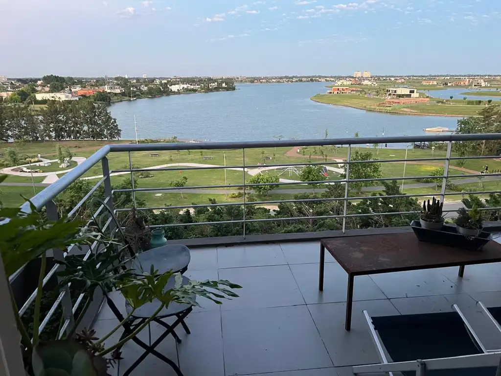 Excelente 3 ambientes con gran terraza y vista a laguna. Pisos cerámicos. Balcón semicubierto. Pisos de porcelanato. Aberturas de PVC. Cochera para 1 auto en subsuelo (Nro B54) y gran baulera lindera (nro 3, 1ra). Calefacción por piso radiante. Splits para aire frio.