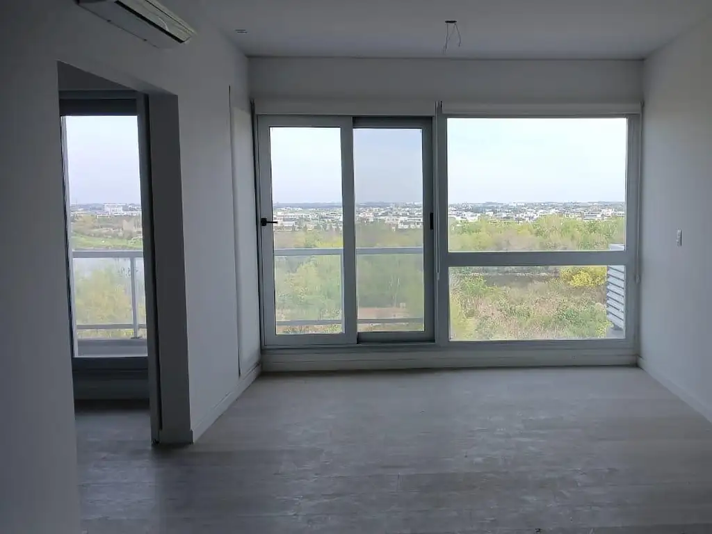 .Gran living con cocina integrada con ventanal al balcon