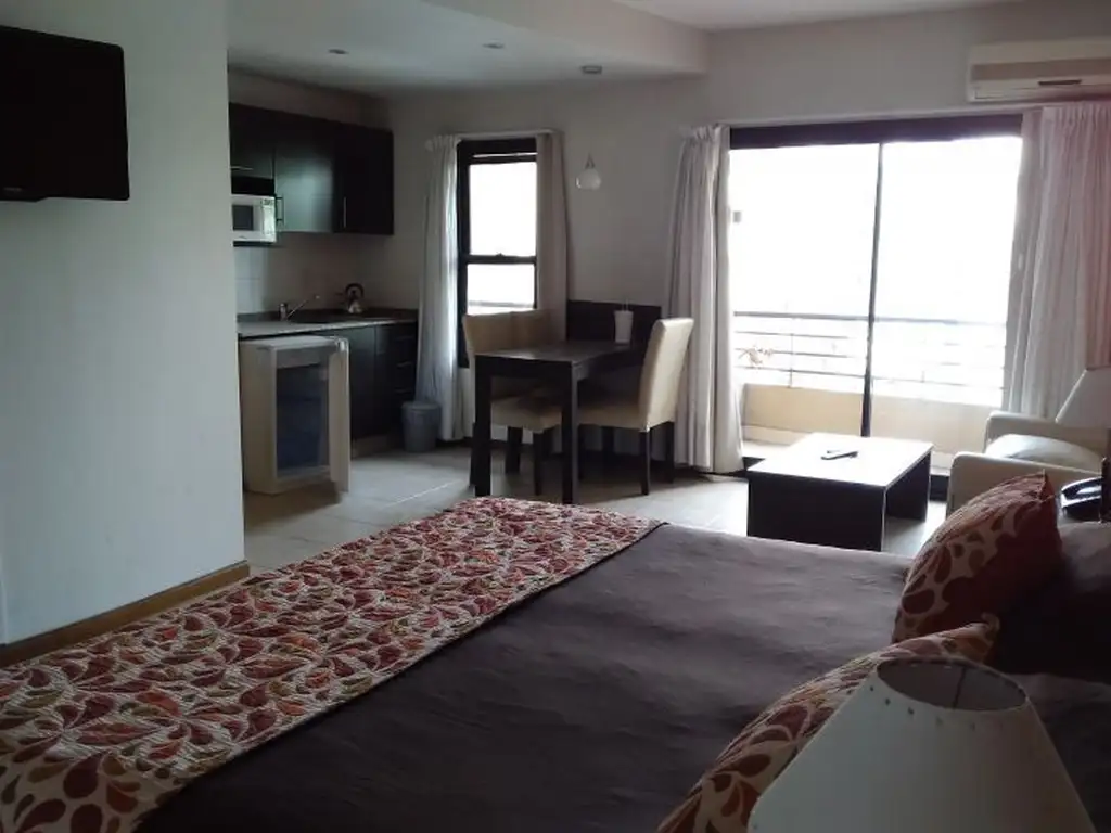 MONOAMBIENTE CON BALCON - BAÑO COMPLETO COCINA OFFICE - 35m2. MUY LUMINOSO COMODIDADES: Agua Caliente y Calefaccion central (losa radiante) Aire Acondicionado frío; Baño completo; Kichinette (anáfe eléctrico); Balcón; Pisos de porcelanato; EQUIPADO Heladera, microondas, vajilla, tv, sabanas , tuallas....visitelo