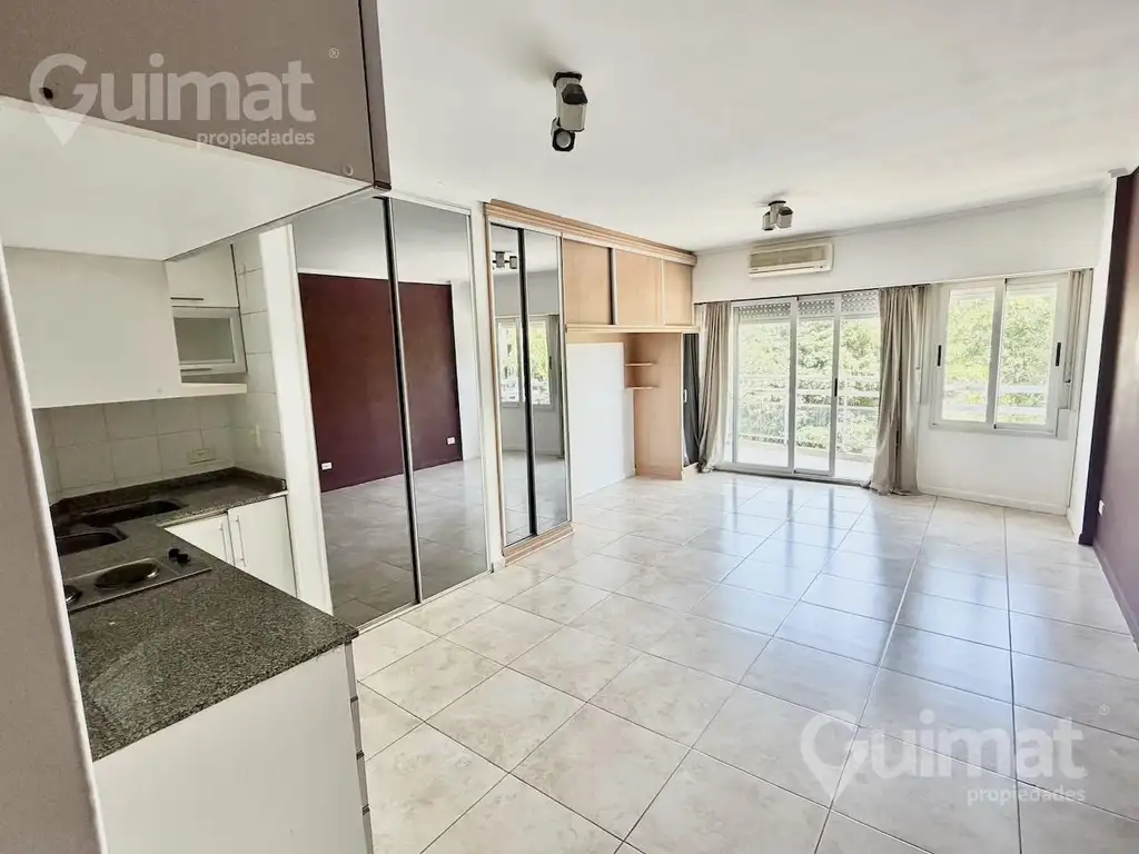 La unidad se encuentra en 4* Piso al frente con gran vista abierta, se accede por un pequeño hall de entrada que orienta al ambiente con 2 grandes placards, cocina integrada con muebles completos de cocina, doble anafe eléctrico, baño completo con bañera y balcón. En subsuelo hay una baulera propia de la unidad tipo jaula. En el edificio hay Laundry en el 1* Piso.