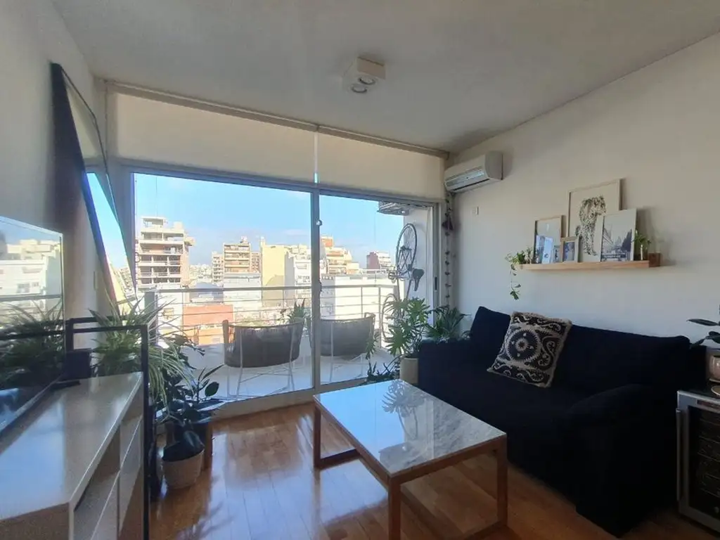 El living-comedor es amplio, cómodo y recibe sol directo durante gran parte del día gracias a su ventanal de piso a techo. Se conecta con un balcón con vista abierta, perfecto para tomar aire, leer o relajar.