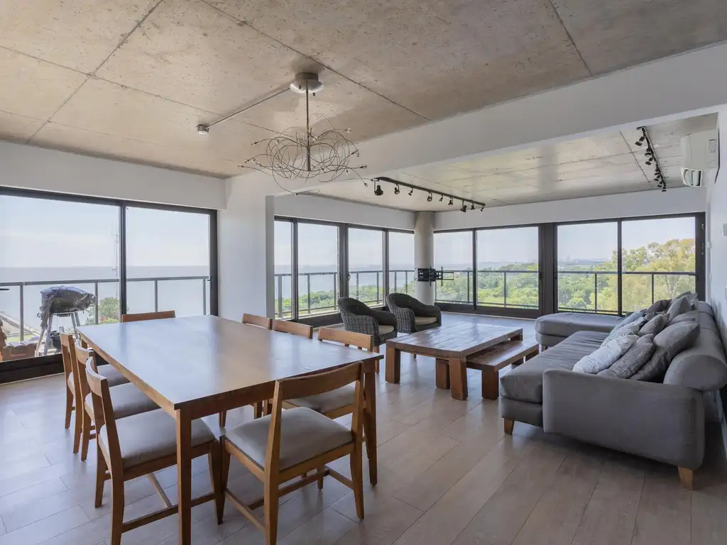 Hall de recepción con placard. Living comedor con la cocina integrada, Con carpinterías de piso a techo, toda la recepción tiene una vista al rio y la ciudad UNICA. También con salida un lindísimo balcón. Toilet de recepción mas baño completo.