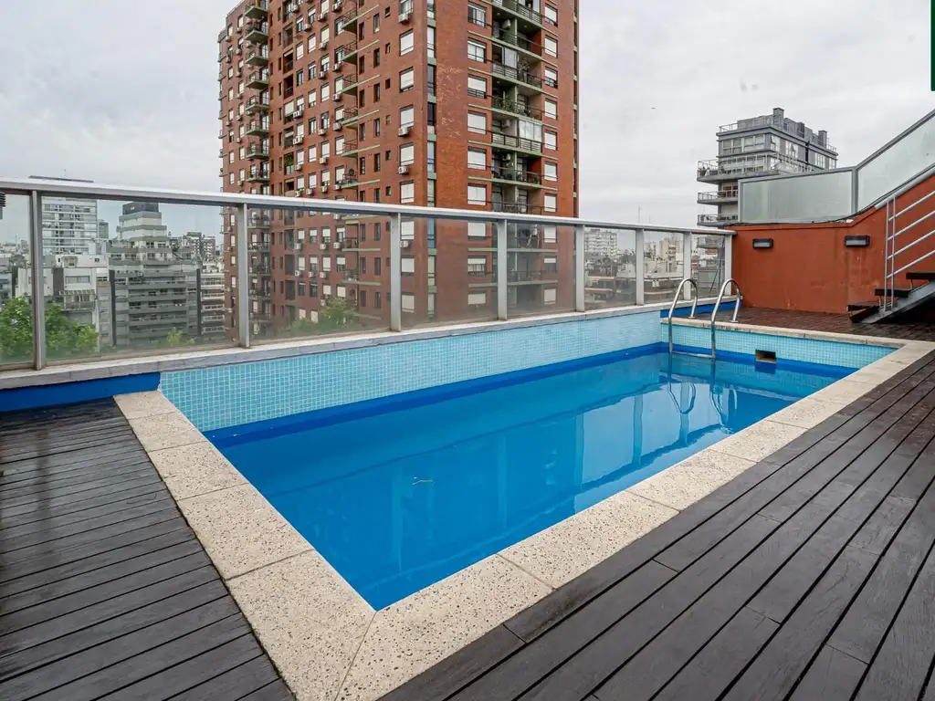 2 ambiente al frente con balcón, pileta, SUM, parrilla