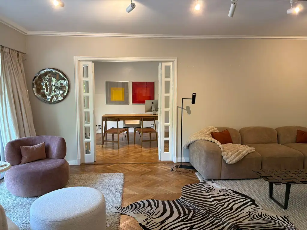 Departamento reciclado a nuevo con muebles de diseño e interiorismo. 170 m2 cubiertos. 200m2 totales (incluye balcón y patio interno). Se encuentra sobre Libertador entre Coronel Díaz y San Martín de Tours. Living y comedor corrido, oficina, cocina, comedor diario, dependencia de servicio. 2 dormitorios, dormitorio principal en suite y vestidor. Otro dormitorio con su baño. Aire acondicionado en todos los ambientes. Ventanas de categoría. El edificio está impecable tiene portero 24 horas + una cochera fija. Precio paquete U$S 5000 incluído expensas.