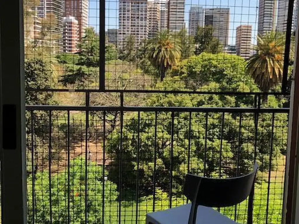 El departamento cuenta con living comedor con salida a balcón y cocina separada con ventanal con vista a la arboleda del Parque Las Heras.