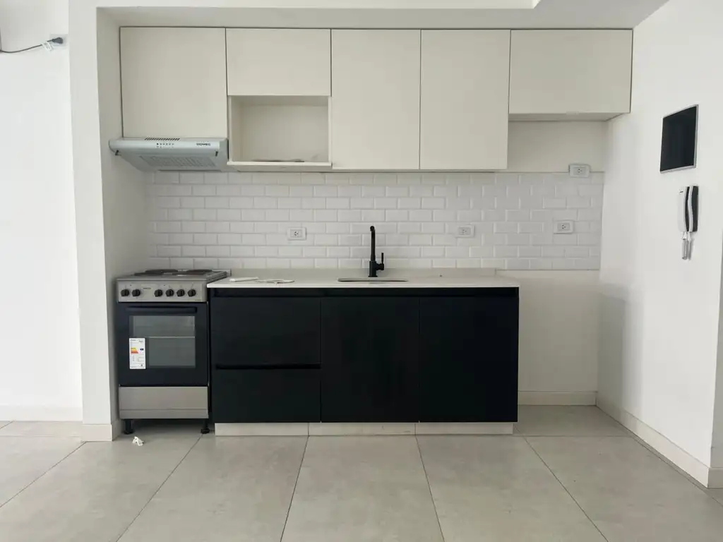 Hermoso monoambiente a estrenar, muy luminoso, con amplio placard con interiores completos y puerta espejada.Cuenta con cocina integrada equipada con muebles bajo mesada y alacenas, cocina eléctrica y excelente y gran espacio de guardado.