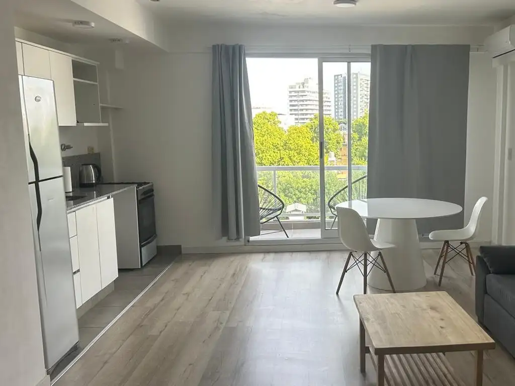 Amplio balcon . Piso alto con hermosa vista abierta a la copa de los arboles .